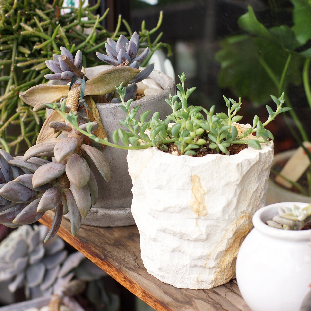 かっこいい自然石のストーンポットに入っているので、そのままインテリアとしても映えます。